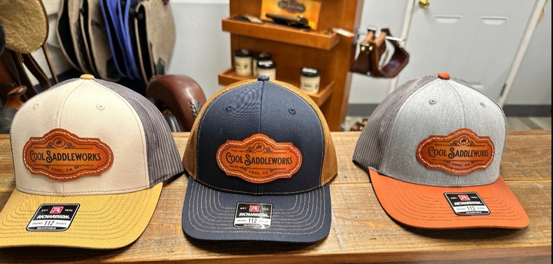 Cool Saddleworks logo hats come in many different colors and have a hand stitched logo patch on the front.
